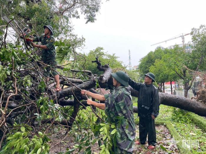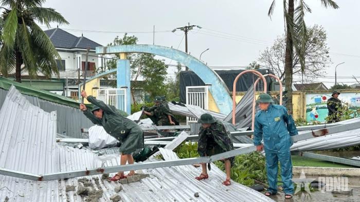 Gió bão đã làm tốc mái nhiều phòng học của Trường Tiểu học Hương Bình (xã Hương Bình, tỉnh Hà Tĩnh), khiến cây cối ngã đổ ngổn ngang. Mặc dù mưa vẫn nặng hạt nhưng hàng chục cán bộ, chiến sĩ Trung đoàn 841 vẫn tổ chức dọn dẹp đống đổ nát để thầy trò sớm trở lại trường. Tại Trường Mầm non Hoa Hồng (xã Can Lộc), Thiếu tá Nguyễn Quốc Toản, Phó trung đoàn trưởng, Tham mưu trưởng Trung đoàn 841, chỉ huy 60 cán bộ, chiến sĩ khắc phục hậu quả. Cô Nguyễn Thị Hoa Thắm, Hiệu trưởng Trường Mầm non Hoa Hồng, xúc động: “3 điểm trường đều bị thiệt hại nặng. Sự có mặt kịp thời của các chú bộ đội giúp nhà trường dọn dẹp, sửa chữa đã tiếp thêm niềm tin và động lực cho thầy và trò.”