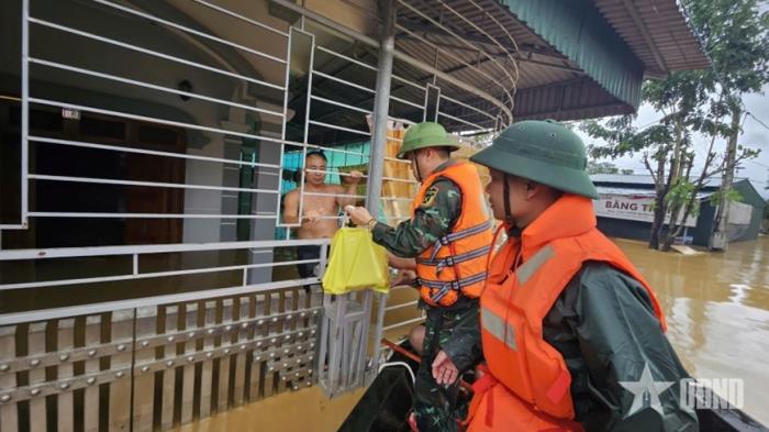 Trong khi đó, tại TP Huế, bão số 10 làm hàng chục héc-ta lúa ở xã A Lưới 3 bị ngã đổ, ngập úng. Ban chỉ huy Phòng thủ khu vực 3-A Lưới huy động 50 cán bộ, chiến sĩ cùng lực lượng dân quân địa phương khẩn trương thu hoạch lúa, vận chuyển về tận các gia đình. Cùng ngày, Bộ CHQS TP Huế đã huy động hàng trăm cán bộ, chiến sĩ của Ban chỉ huy Phòng thủ khu vực 1-Hương Trà, Ban chỉ huy Phòng thủ khu vực 3-Phú Lộc, lực lượng dân quân nhiều địa phương đồng loạt ra quân giúp nhân dân các xã Quảng Điền, Vinh Lộc, Hưng Lộc lợp lại nhà, thu gom cây xanh gãy đổ, dọn dẹp vệ sinh đường làng, ngõ xóm...