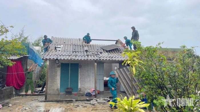 Do ảnh hưởng của bão số 10, nhiều địa phương của tỉnh Nghệ An cũng thiệt hại nặng nề. Hàng trăm ngôi nhà bị tốc mái, nhiều công trình công cộng bị hư hại. Bộ CHQS tỉnh Nghệ An đã cử lực lượng tỏa về các hướng, khẩn trương giúp nhân dân khắc phục hậu quả, nhanh chóng ổn định cuộc sống.
