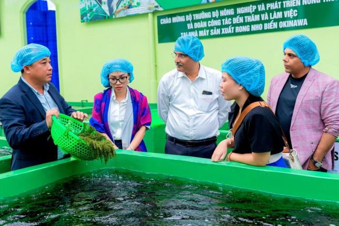 Nhiều đối tác nước ngoài tới tham quan mô hình chế biến rong nho tại tỉnh Khánh Hòa. Ảnh: Kim Sơ.