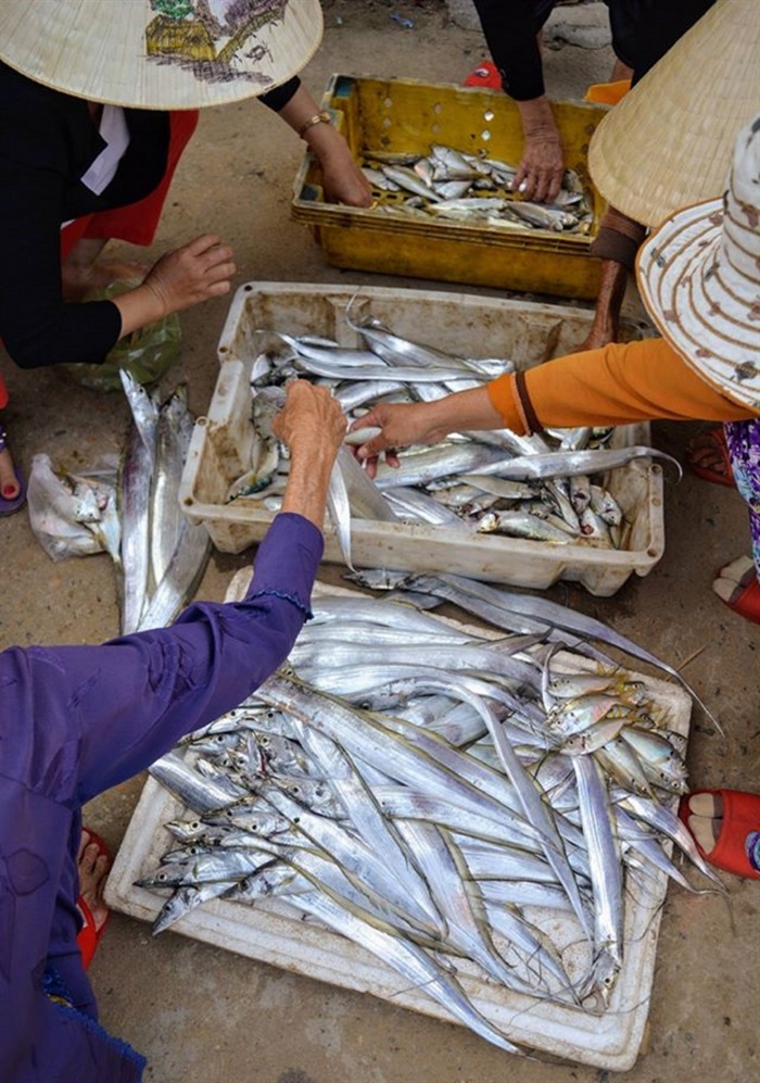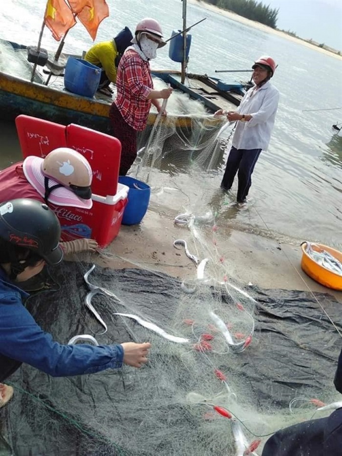 VBĐVN. vn - Khi thuyền vào bờ, xa xa những chiếc xe máy mua cá, chở cá tấp nập đến. Những ngày này, ngư dân ven biển bắt đầu khai thác cá hố. Đây là loài hải sản có giá trị cao được xuất khẩu ra nhiều nước.