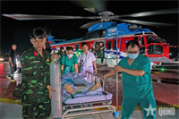 07:34 - 11/11/2025VBĐVN.vn - Lúc 1 giờ 30 phút ngày 10-11, máy bay trực thăng EC225 số hiệu VN 8622 (Binh đoàn 18) chở tổ cấp cứu đường không Bệnh viện Quân y 175 đã hạ cánh tại sân đỗ bệnh viện, kịp thời đưa bệnh nhân bị tràn khí, tràn máu khoang màng phổi trái do lặn sâu ở khu vực đặc khu Trường Sa (Khánh Hòa) về đất liền điều trị khẩn cấp.