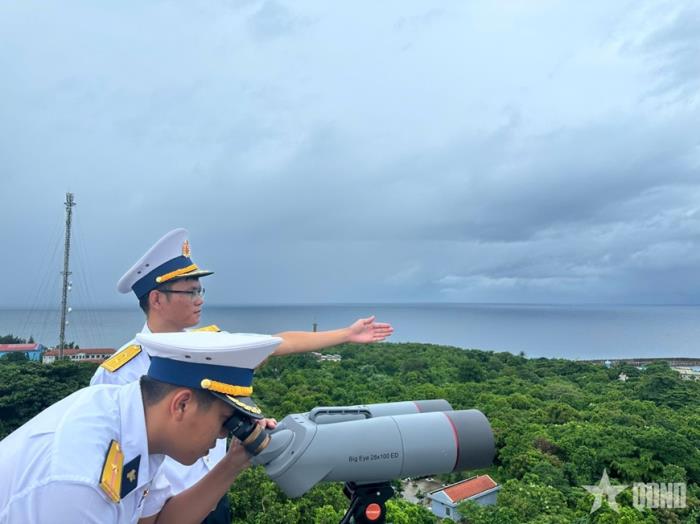 Trong căn phòng hẹp, tôi nghe tiếng máy radar hòa cùng tiếng gió rít qua khe cửa. Trên màn hình, những điểm nhỏ mục tiêu được ghi chép, đánh dấu tỉ mỉ. Ở đây không có tiếng súng, không có tiếng hò reo, chỉ có sự tập trung tuyệt đối và những ánh mắt không bao giờ rời màn hình. Đại úy QNCN Phạm Văn Tiến, nhân viên radar Trạm 545 nói: “Ngày đầu lên đây, tôi rất bỡ ngỡ. Nhưng càng ở lâu càng thấy gắn bó. Ở đây có đồng đội và có những màn hình hiện sóng, những “mắt thần” làm bạn. Chúng tôi làm việc với radar bằng con tim và hệ thần kinh tỉnh táo. Chỉ cần một giây lơ đãng là mất dấu mục tiêu”. Thiếu tá Hoàng Văn Tưởng giọng trầm ấm: “Nghề này nó vậy. Nếu lỡ bỏ sót mục tiêu thì không thể an tâm được. Cái cảm giác mình đang bảo vệ cả một vùng biển khiến ai cũng phải tỉnh táo”.