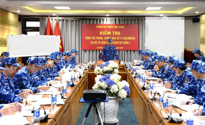 VBĐVN.vn - Ngày 6-11, Thiếu tướng Lê Đình Cường, Tư lệnh Cảnh sát biển Việt Nam và đoàn công tác đã đến kiểm tra công tác phòng, chống bão số 13 (Kalmaegi) tại Bộ tư lệnh Vùng Cảnh sát biển 2.