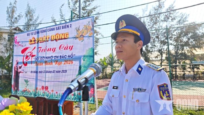 Phát biểu tại buổi lễ, Đại tá Trần Hồng Quế, Phó chính ủy Vùng Cảnh sát biển 2 kêu gọi toàn thể cán bộ, chiến sĩ tích cực hưởng ứng, tham gia trồng cây, gây rừng, coi đây là nhiệm vụ thiết thực xây dựng đơn vị.